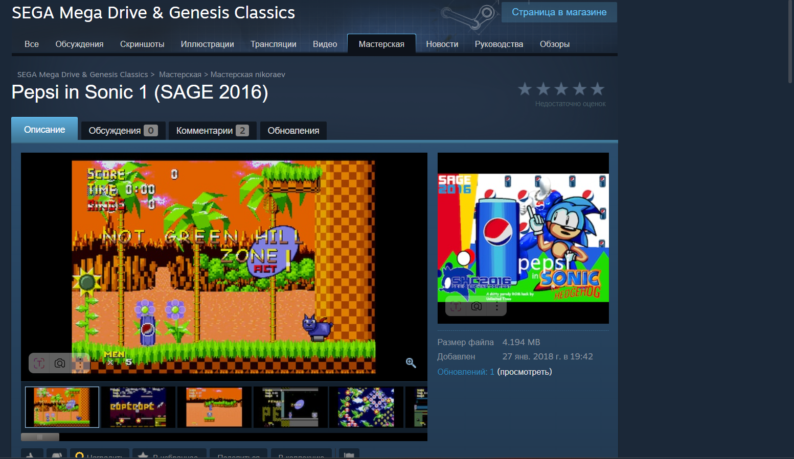 Опубликовано: 25 мая 2025 В 09.05.2025в00:37, thevaleev сказал: Не пробовали искать сначала в поисковиках? Просто если вбить туда что-то вроде "pepsi in sonic hack", то покажет именно то, что вы ищете. Речь наверняка о Pepsi in Sonic 1, и это не фан-игра, это ROM-хак. спасибо тебе большое что снова помог мне! 2 Поделиться сообщением Ссылка на сообщение Поделиться на других сайтах